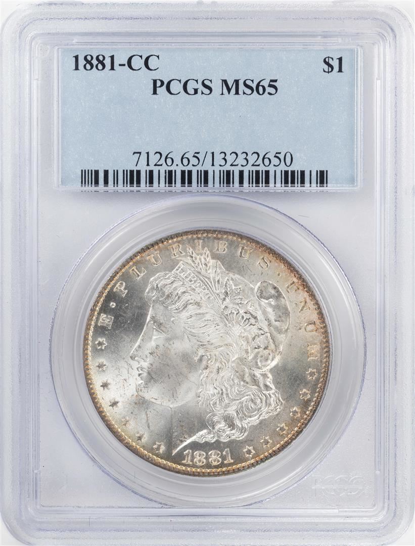 One 1881-CC $1 Morgan Silver Dollar Coin PCGS MS65. PCGS Graded.