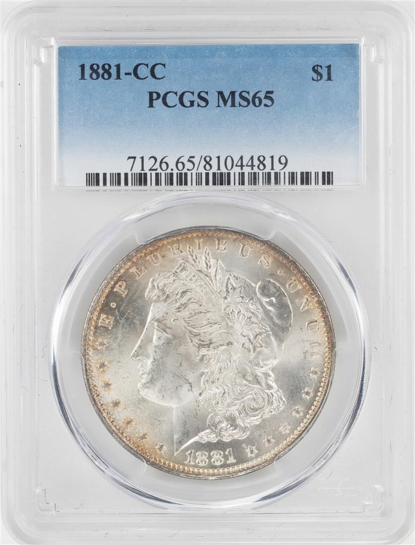 One 1881-CC $1 Morgan Silver Dollar Coin PCGS MS65. PCGS Graded.