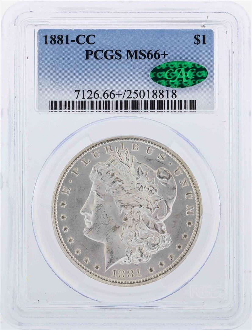 One 1881-CC $1 Morgan Silver Dollar Coin PCGS MS66+ CAC. PCGS Graded.