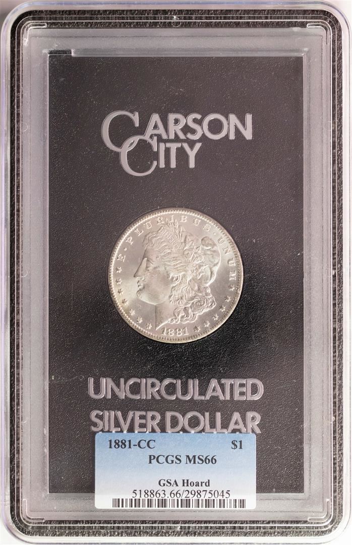 One 1881-CC $1 Morgan Silver Dollar Coin Uncirculated GSA Hoard PCGS MS66. PCGS Graded.
