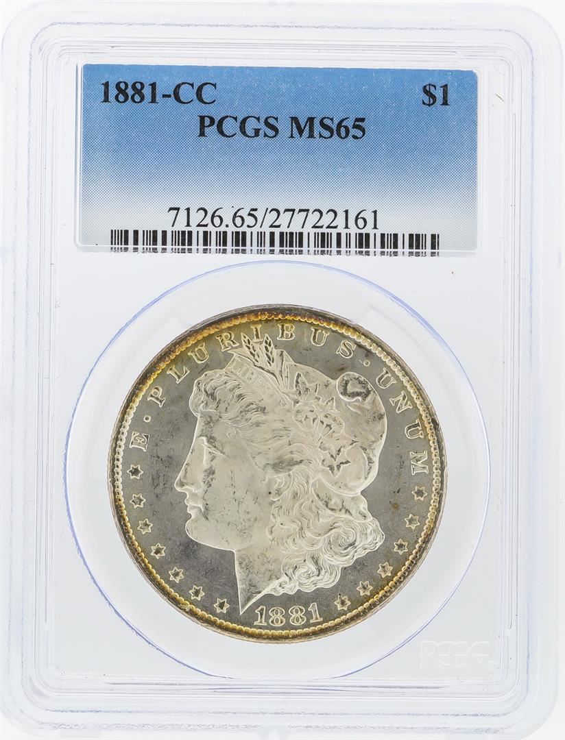 One 1881-CC $1 Morgan Silver Dollar PCGS Graded MS65. PCGS Graded.