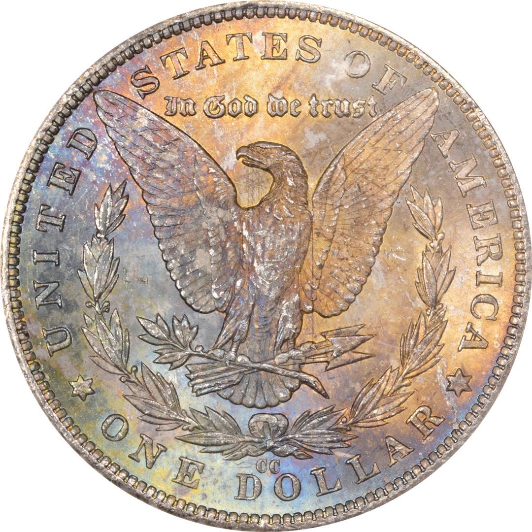 One 1881-CC VAM-4 $1 Morgan Silver Dollar Coin ANACS MS63 GSA Amazing Toning. ANACS Certified.