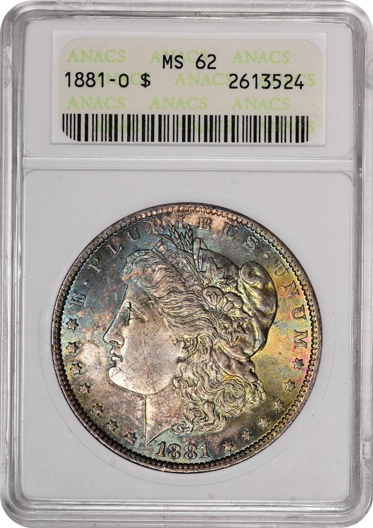 1881-O $1 Morgan Silver Dollar Coin ANACS MS62 Amazing Toning