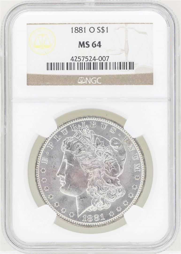 One 1881-O $1 Morgan Silver Dollar Coin NGC MS64. NGC Certified.