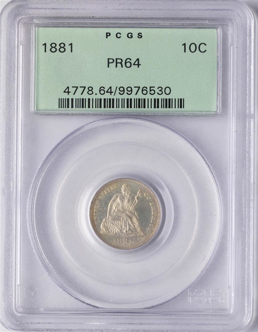 One 1881 Proof Seated Liberty Dime Coin PCGS PR64. PCGS Graded.