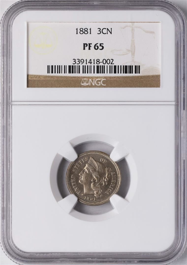 One 1881 Proof Three Cent Nickel Coin NGC PF65. NGC Certified.