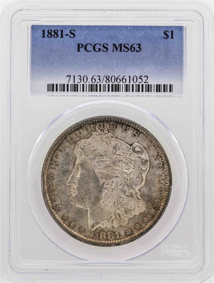 One 1881-S $1 Morgan Dollar Coin PCGS MS63. PCGS Graded.