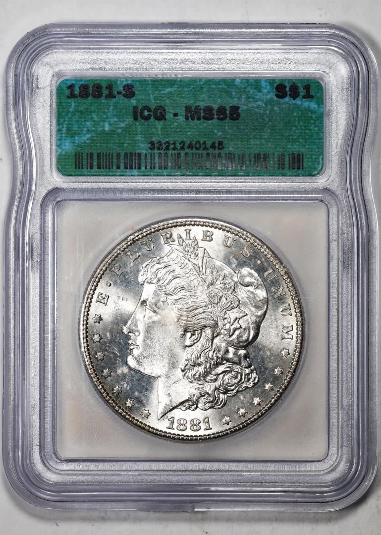 One 1881-S $1 Morgan Silver Dollar Coin ICG MS65. ICG Certified.