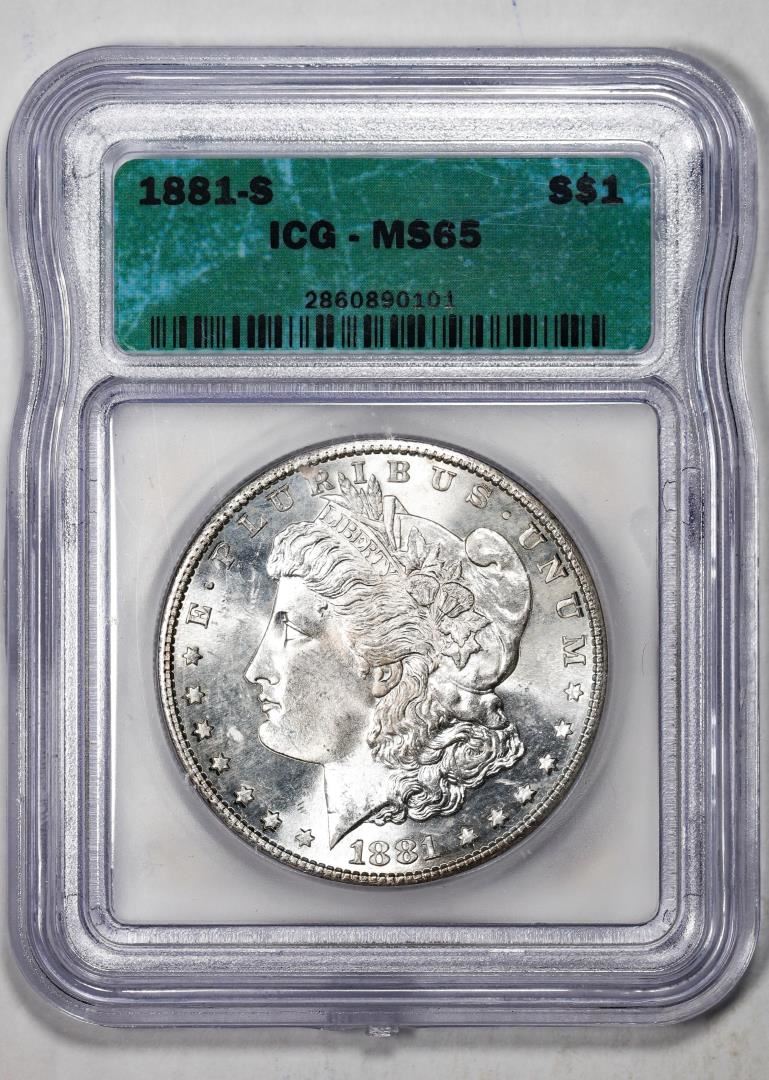 One 1881-S $1 Morgan Silver Dollar Coin ICG MS65. ICG Certified.