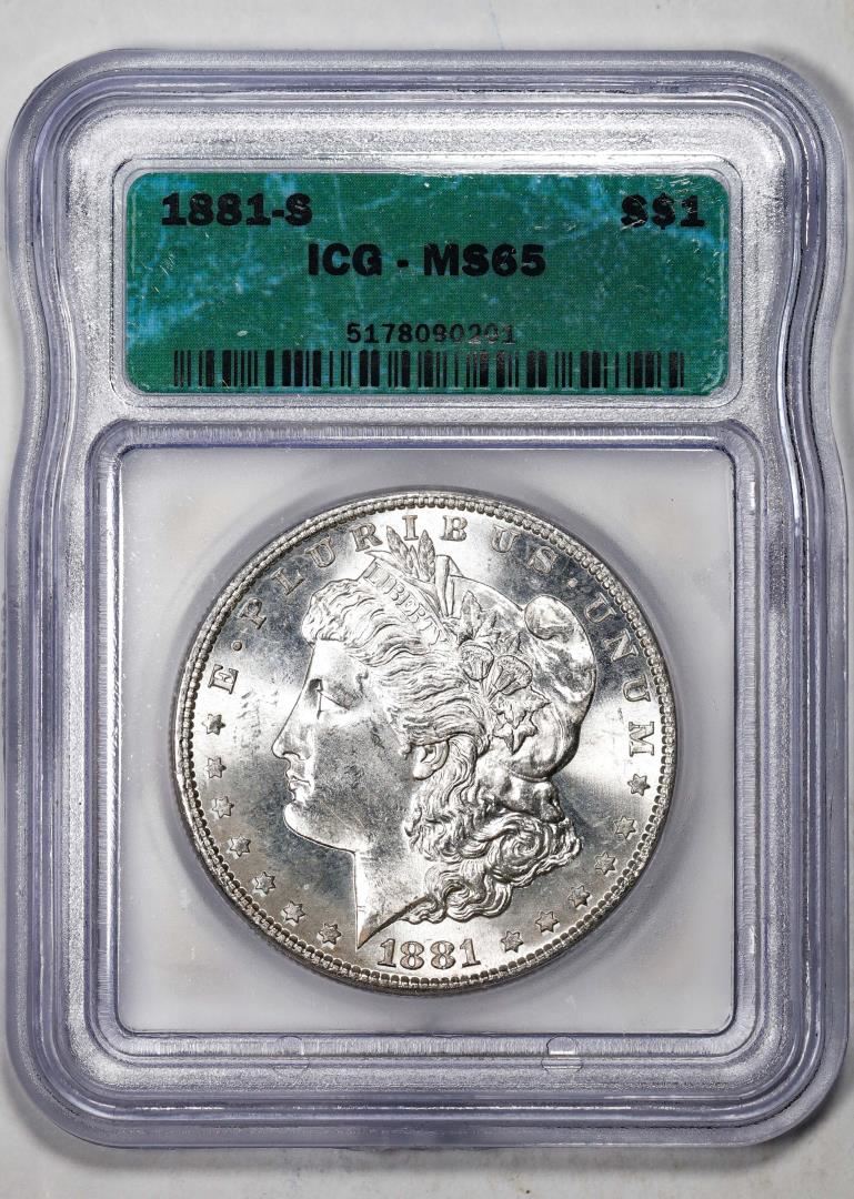 One 1881-S $1 Morgan Silver Dollar Coin ICG MS65. ICG Certified.