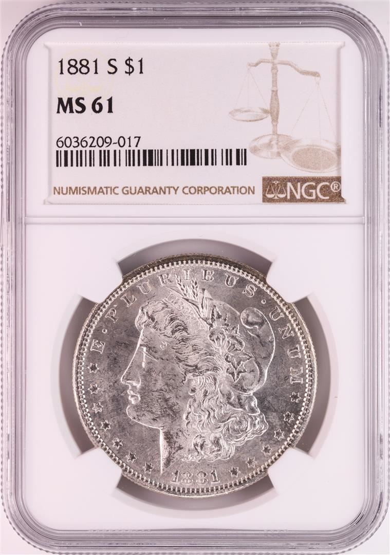 1881-S $1 Morgan Silver Dollar Coin NGC MS61 Great Toning
