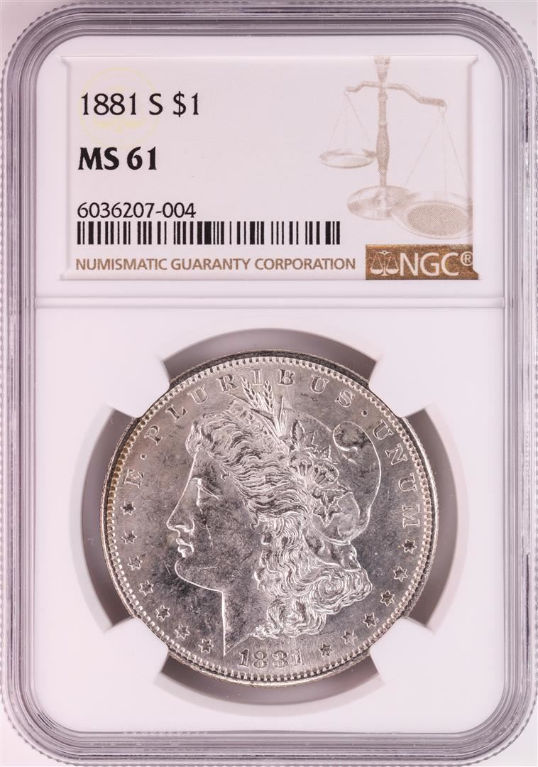 One 1881-S $1 Morgan Silver Dollar Coin NGC MS61 Nice Toning. NGC Certified.