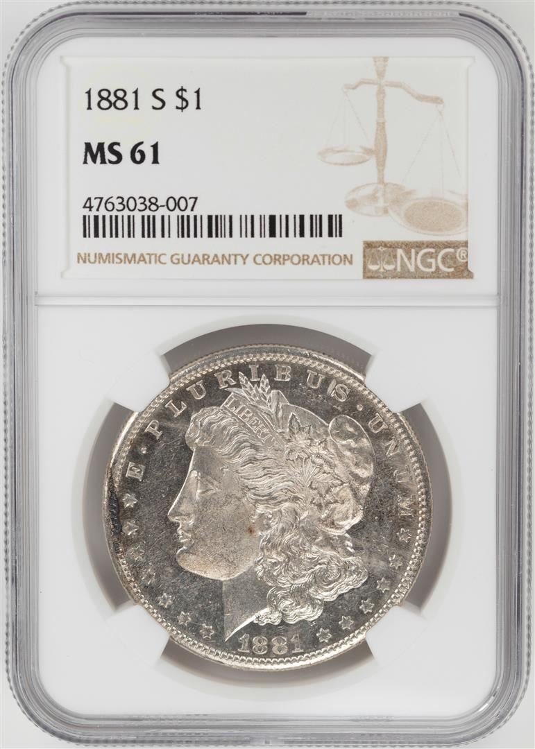 One 1881-S $1 Morgan Silver Dollar Coin NGC MS61. NGC Certified.