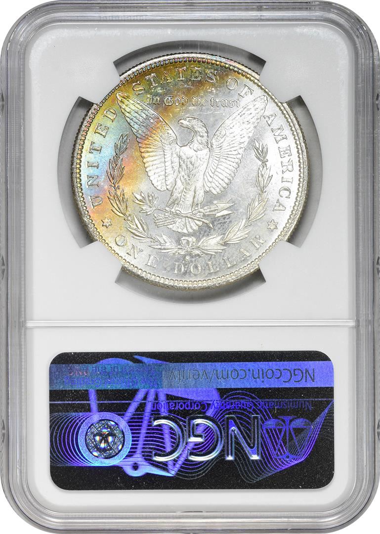 One 1881-S $1 Morgan Silver Dollar Coin NGC MS62 CAC Amazing Toning. NGC Certified.