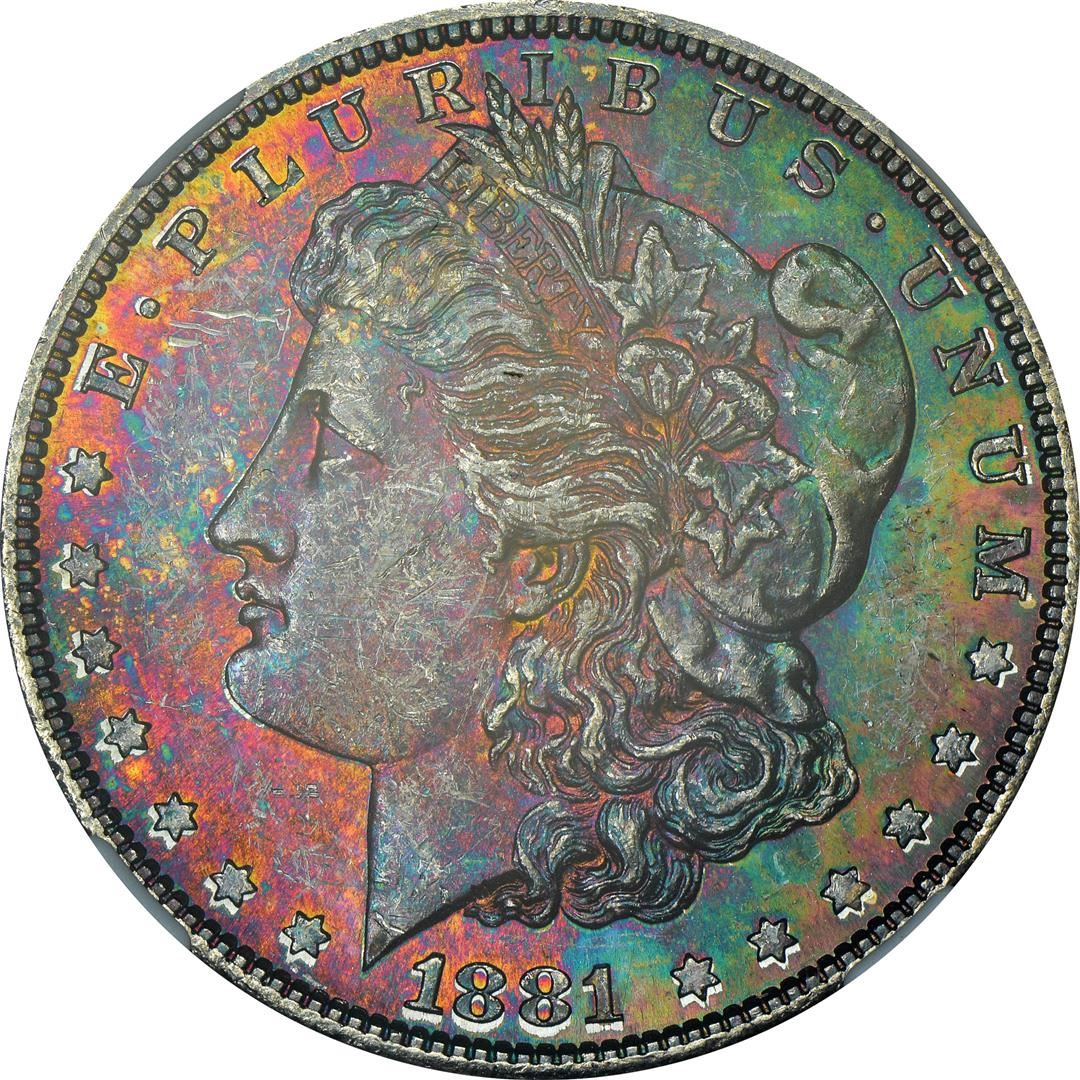 One 1881-S $1 Morgan Silver Dollar Coin NGC MS62 CAC Amazing Toning. NGC Certified.