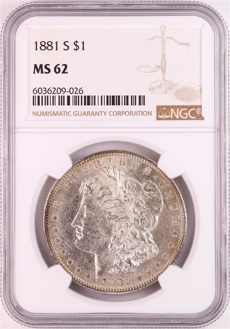 1881-S $1 Morgan Silver Dollar Coin NGC MS62 Great Toning