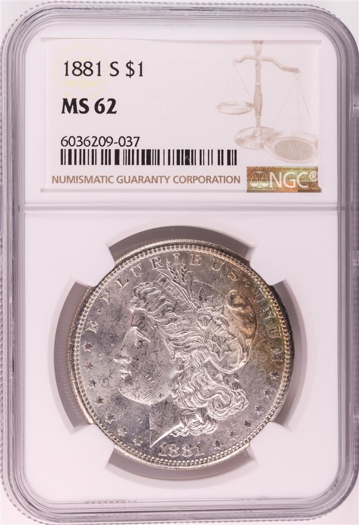 1881-S $1 Morgan Silver Dollar Coin NGC MS62 Nice Toning