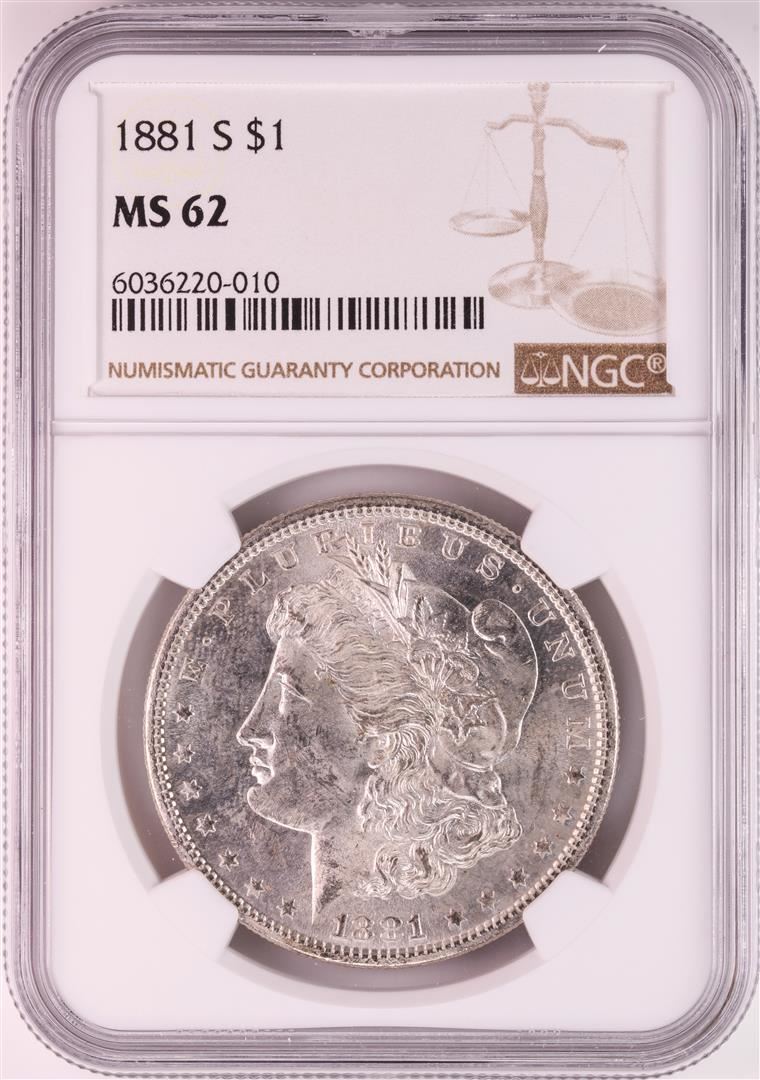 One 1881-S $1 Morgan Silver Dollar Coin NGC MS62 Nice Toning. NGC Certified.