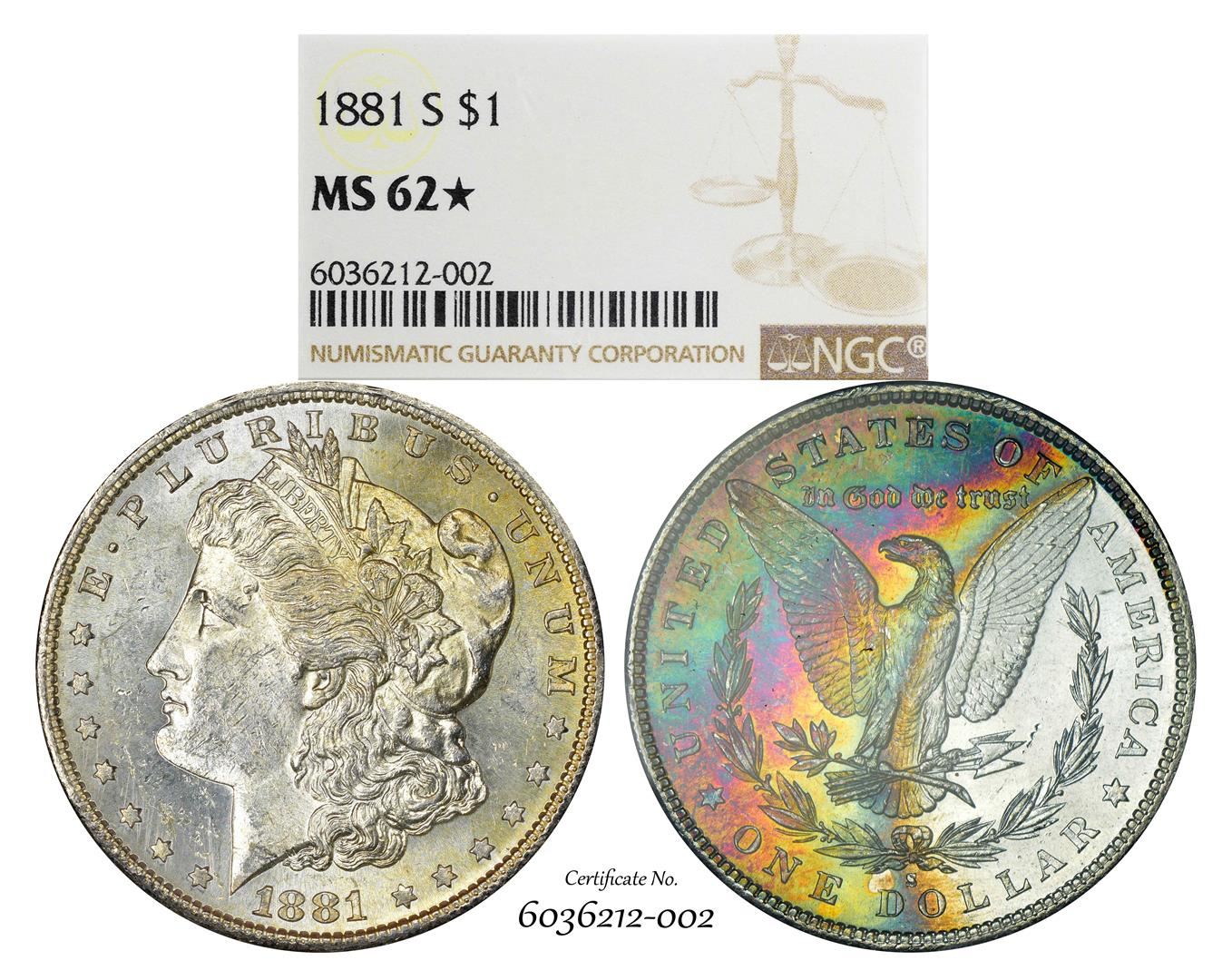 1881-S $1 Morgan Silver Dollar Coin NGC MS62* Star Amazing Toning