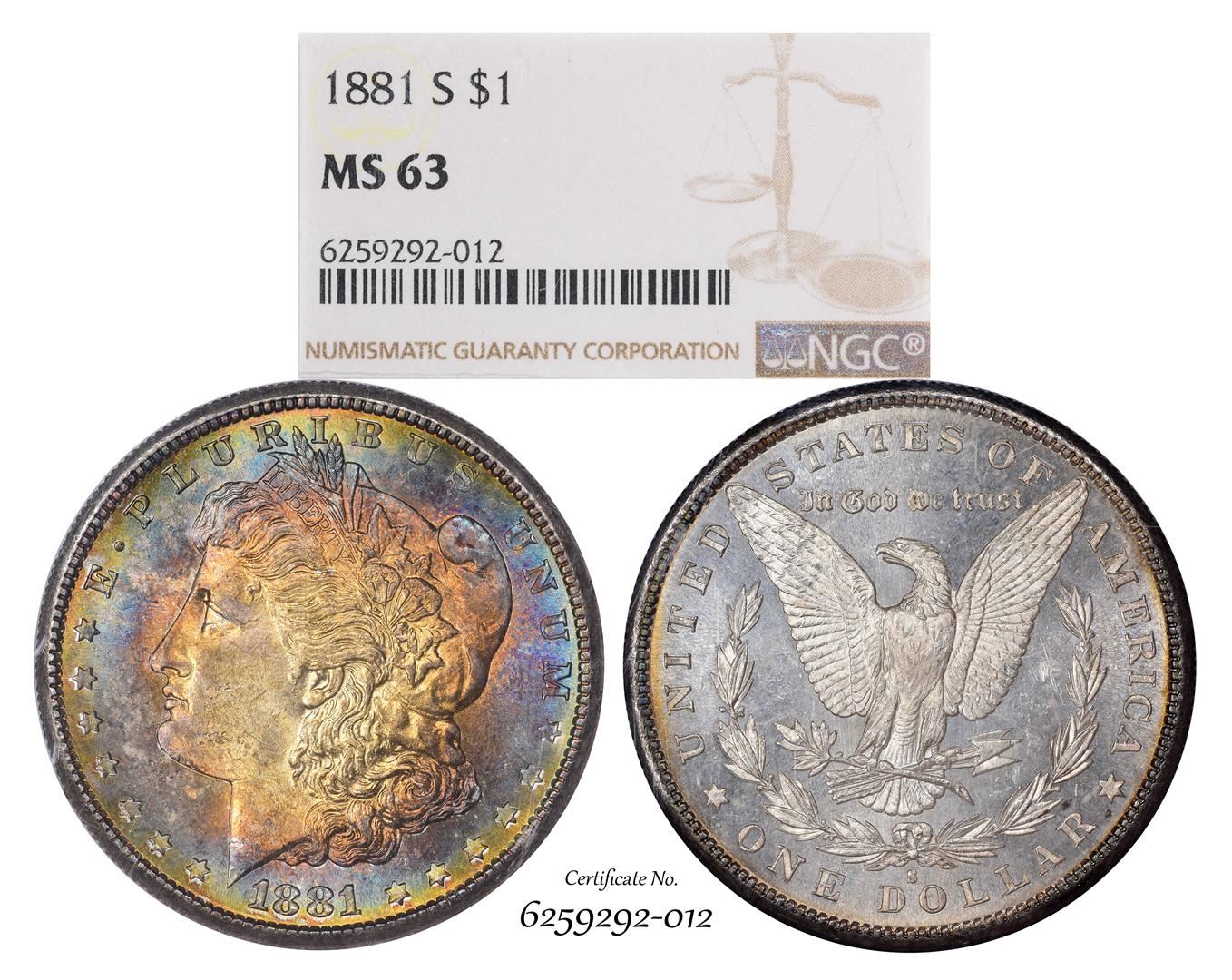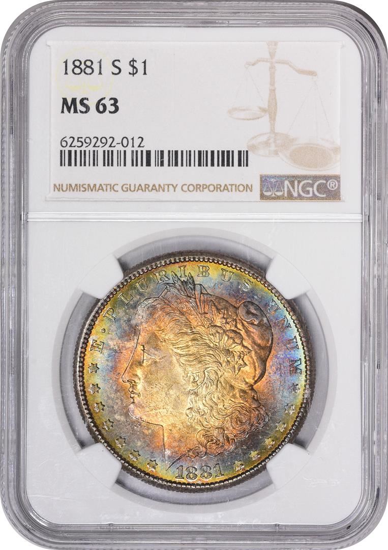 1881-S $1 Morgan Silver Dollar Coin NGC MS63 Amazing Toning