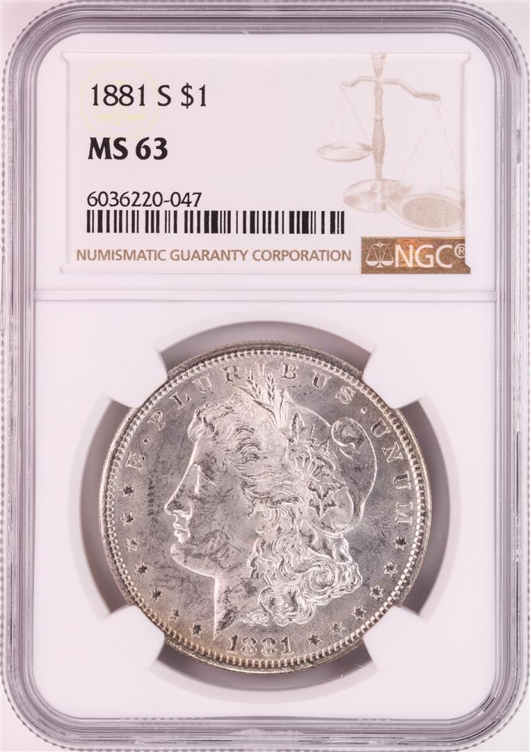 1881-S $1 Morgan Silver Dollar Coin NGC MS63 Nice Toning