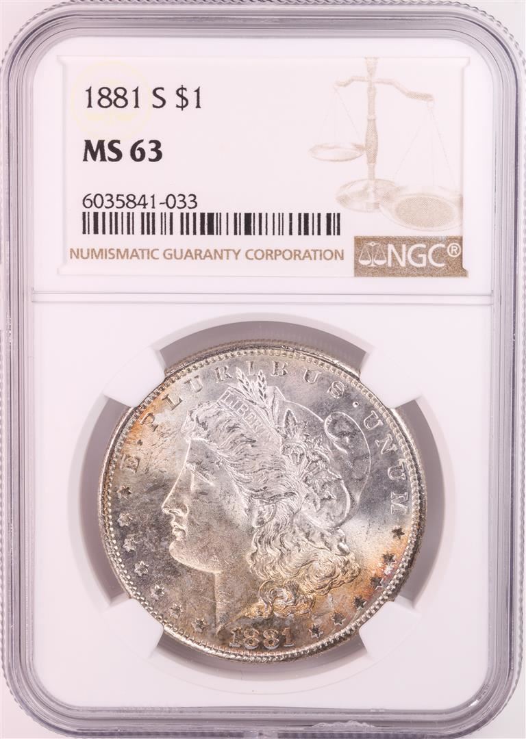 1881-S $1 Morgan Silver Dollar Coin NGC MS63 Nice Toning