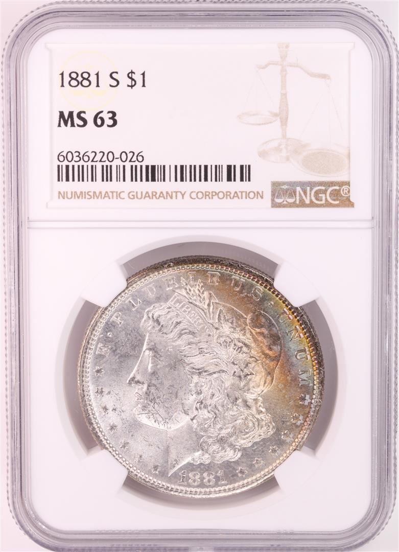 One 1881-S $1 Morgan Silver Dollar Coin NGC MS63 Nice Toning. NGC Certified.