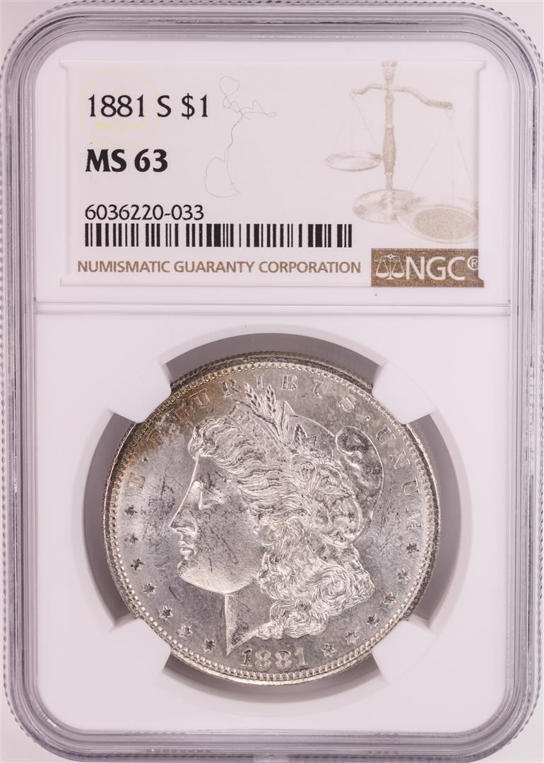 One 1881-S $1 Morgan Silver Dollar Coin NGC MS63 Nice Toning. NGC Certified.