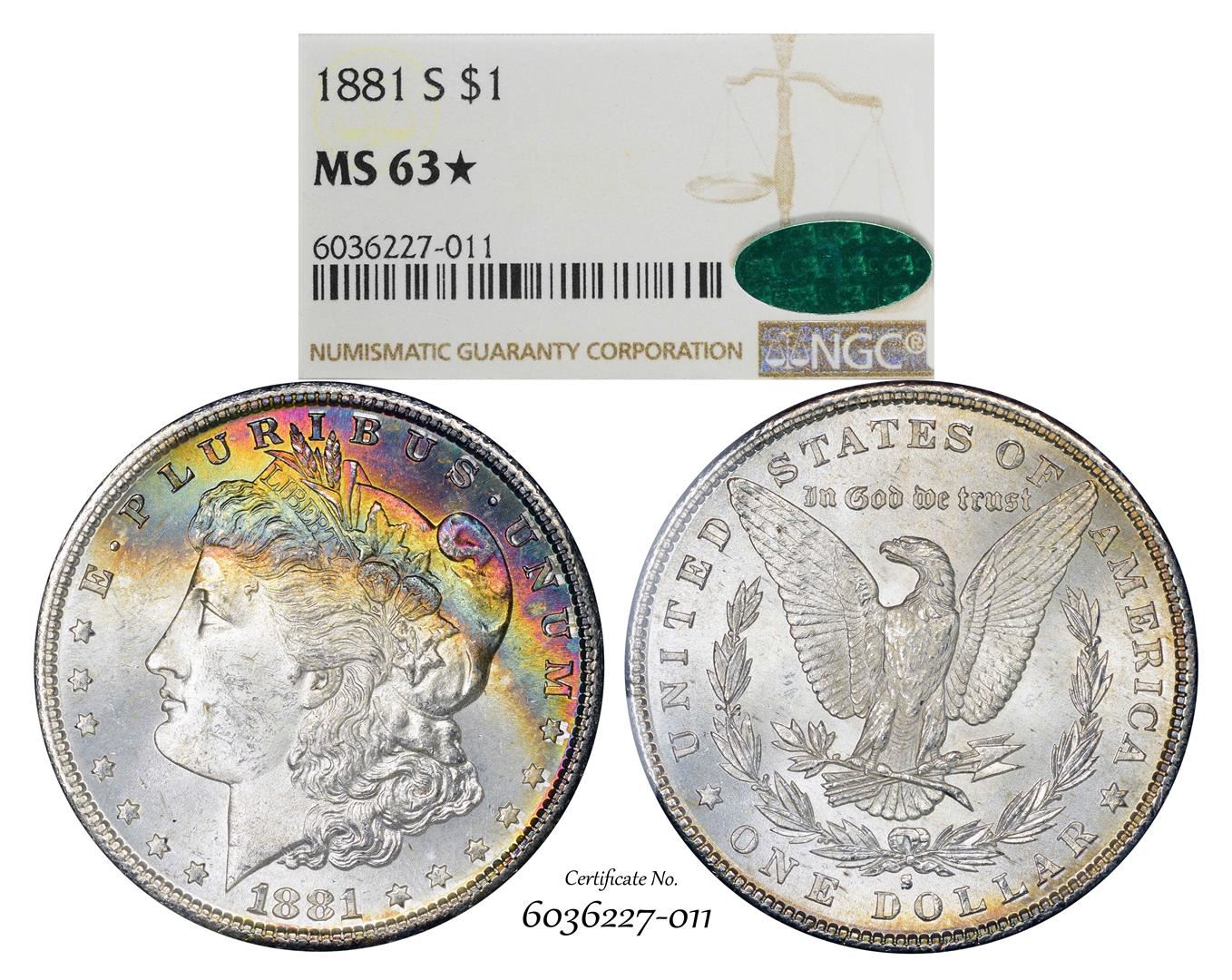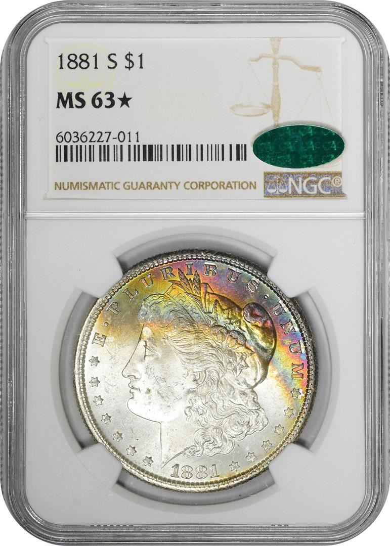 1881-S $1 Morgan Silver Dollar Coin NGC MS63* Star CAC Amazing Toning