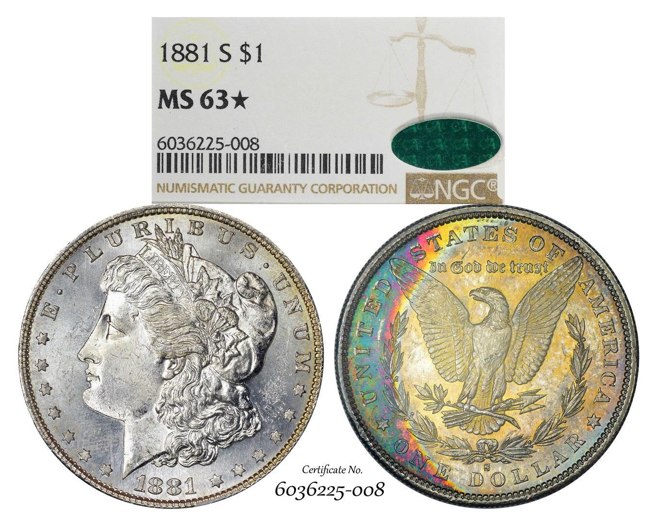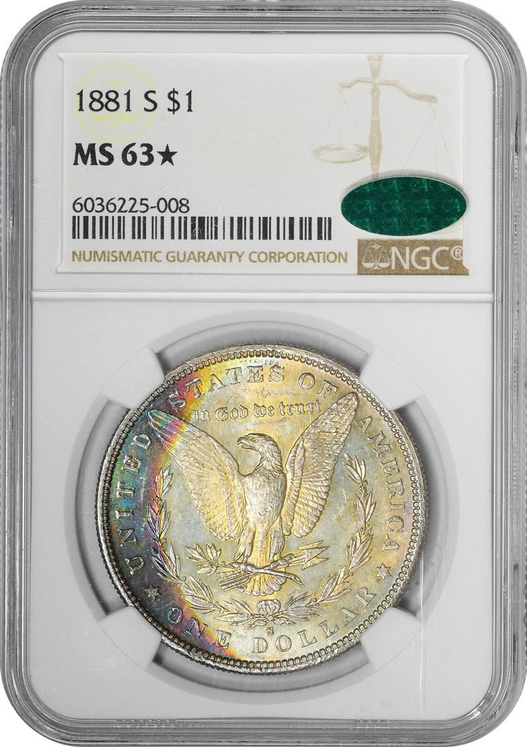 1881-S $1 Morgan Silver Dollar Coin NGC MS63* Star CAC Amazing Toning