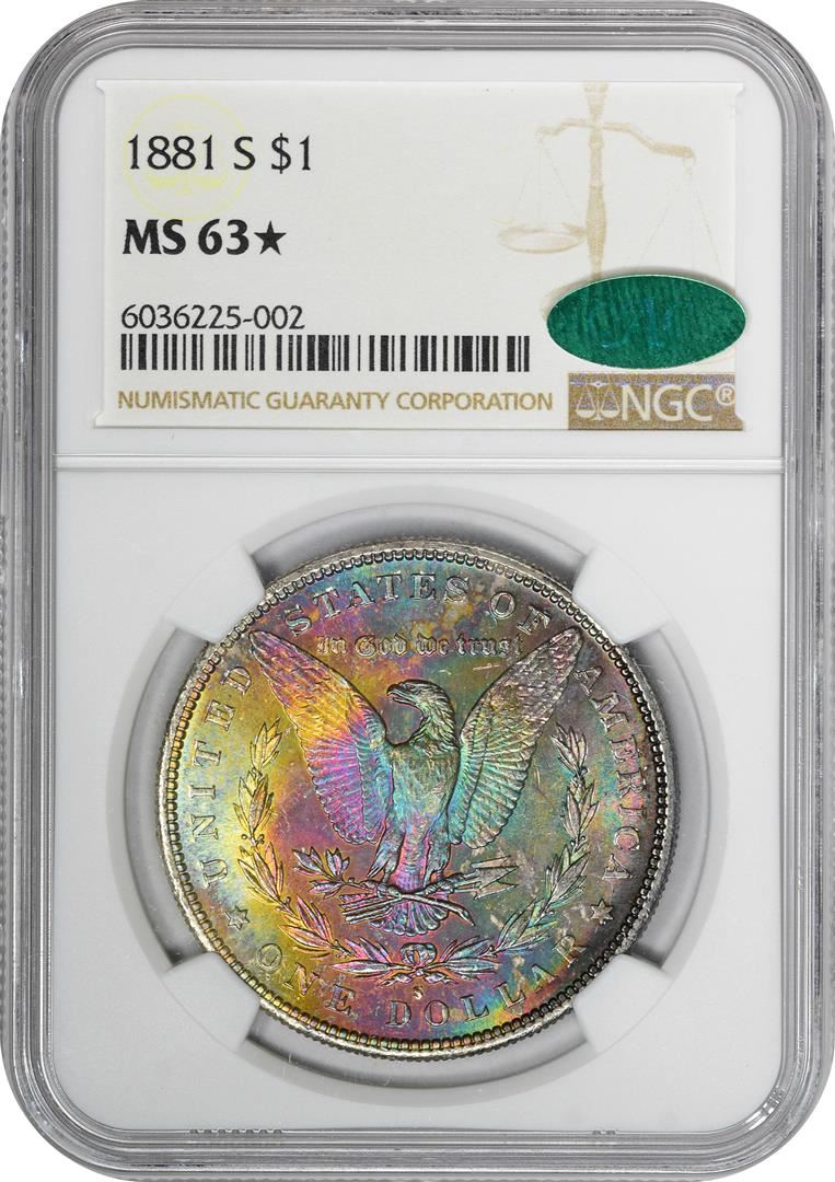 1881-S $1 Morgan Silver Dollar Coin NGC MS63* Star CAC Amazing Toning