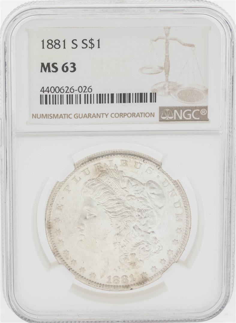 One 1881-S $1 Morgan Silver Dollar Coin NGC MS63. NGC Certified.