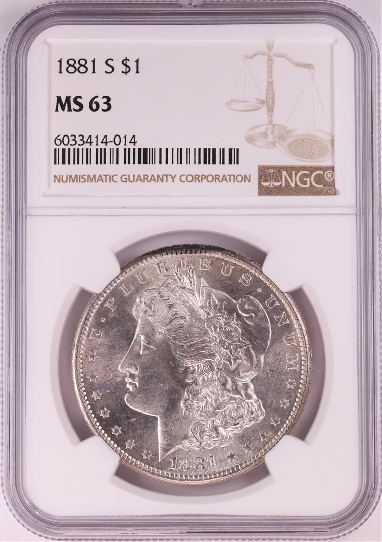 One 1881-S $1 Morgan Silver Dollar Coin NGC MS63.