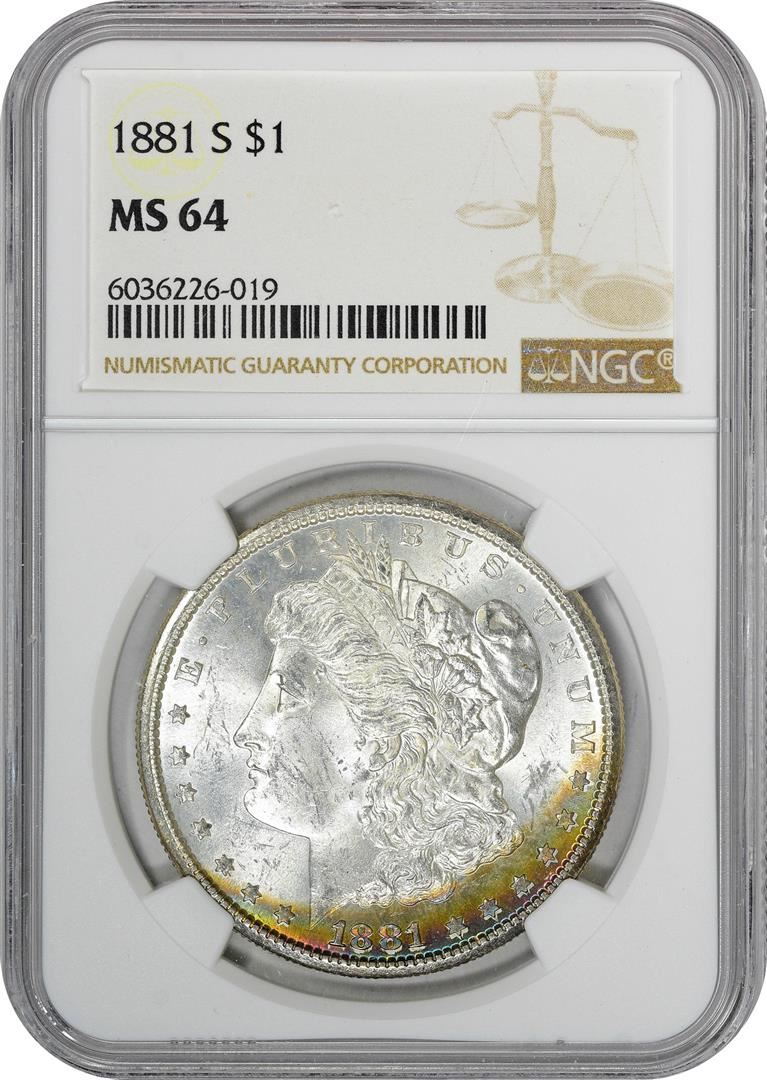 1881-S $1 Morgan Silver Dollar Coin NGC MS64 Amazing Toning