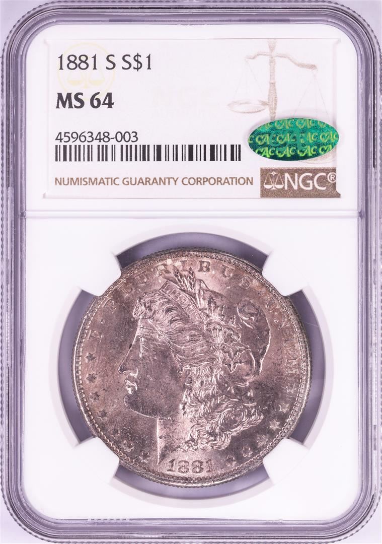 1881-S $1 Morgan Silver Dollar Coin NGC MS64 CAC Nice Toning