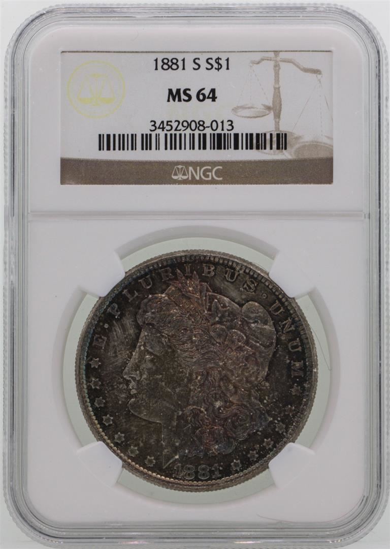One 1881-S $1 Morgan Silver Dollar Coin NGC MS64 NICE TONING. NGC Certified.