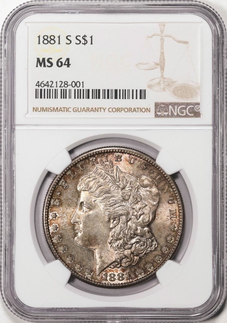 1881-S $1 Morgan Silver Dollar Coin NGC MS64 Nice Toning