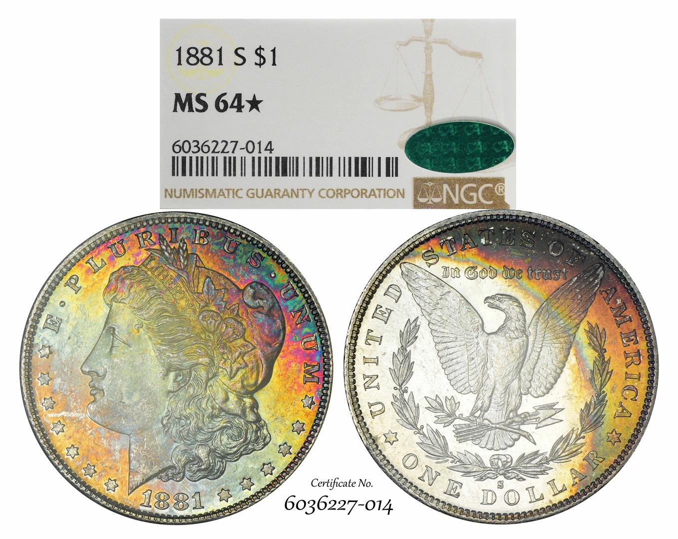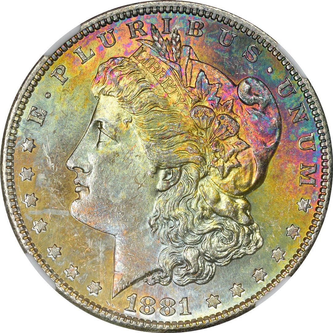 1881-S $1 Morgan Silver Dollar Coin NGC MS64* Star CAC Amazing Toning