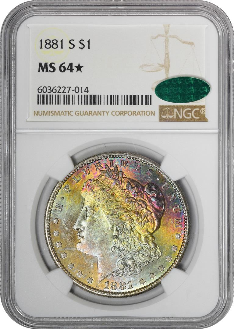 1881-S $1 Morgan Silver Dollar Coin NGC MS64* Star CAC Amazing Toning