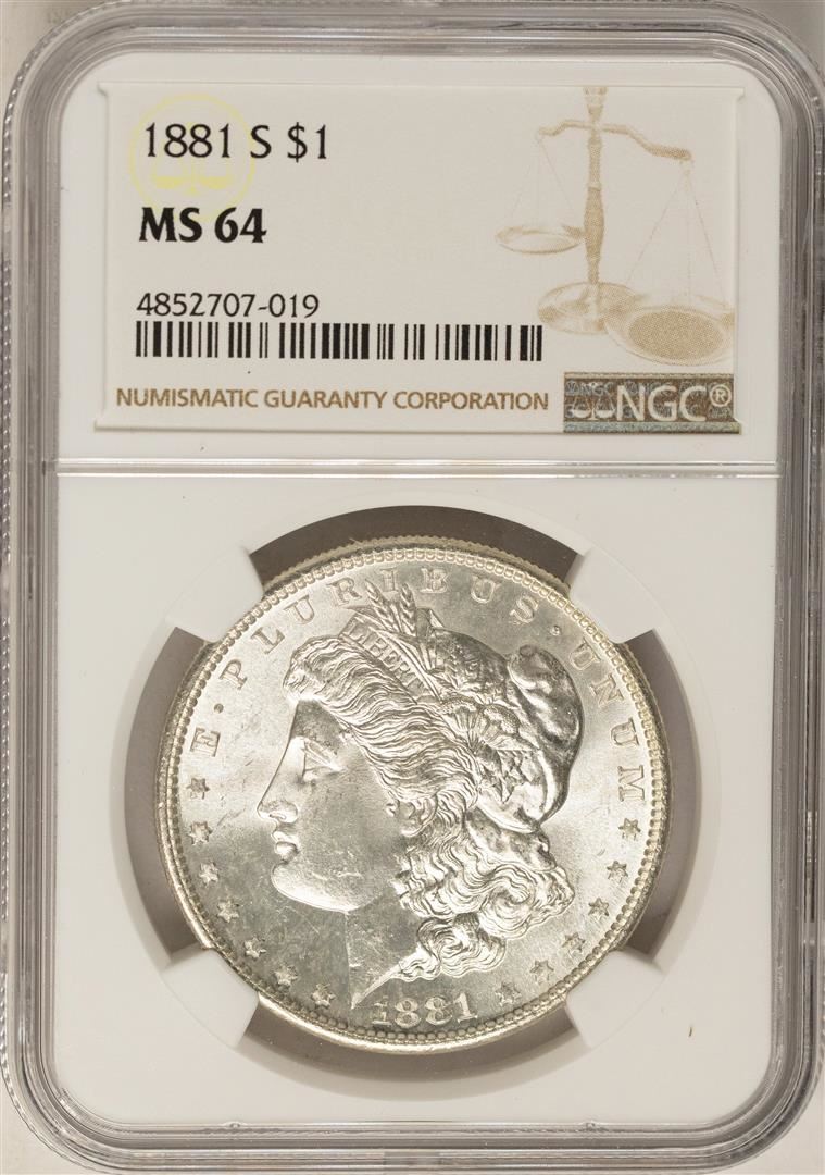 One 1881-S $1 Morgan Silver Dollar Coin NGC MS64. NGC Certified.