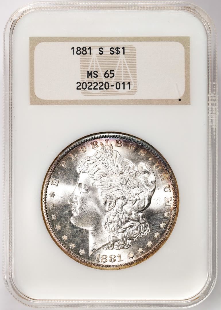 1881-S $1 Morgan Silver Dollar Coin NGC MS65 Old Fatty Holder
