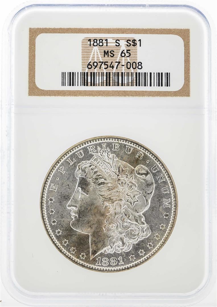 One 1881-S $1 Morgan Silver Dollar Coin NGC MS65. NGC Certified.