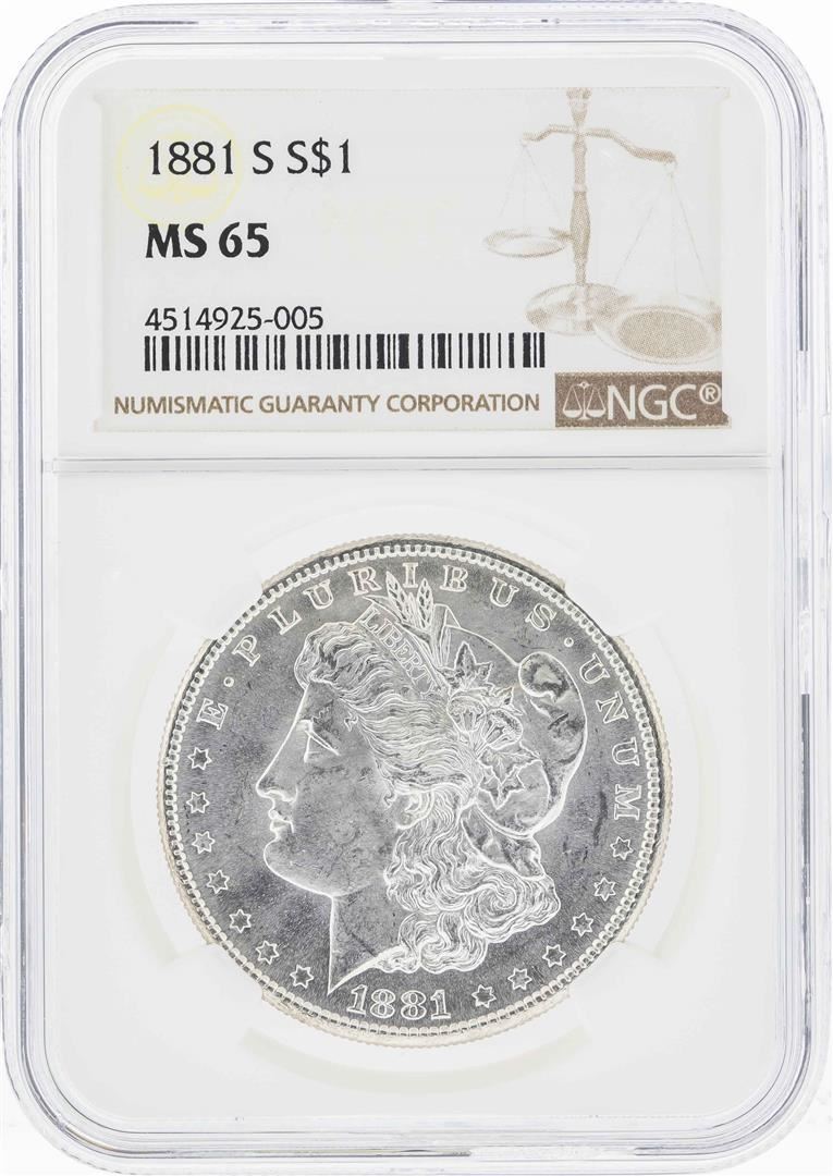 One 1881-S $1 Morgan Silver Dollar Coin NGC MS65. NGC Certified.
