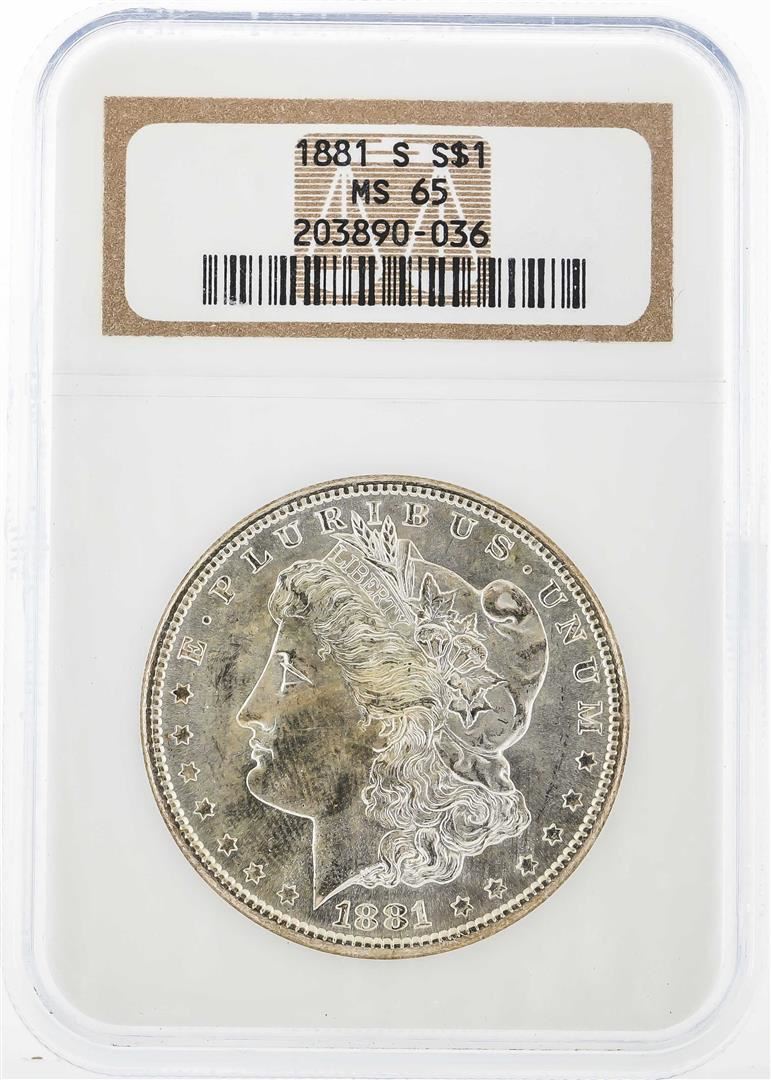 One 1881-S $1 Morgan Silver Dollar Coin NGC MS65. NGC Certified.