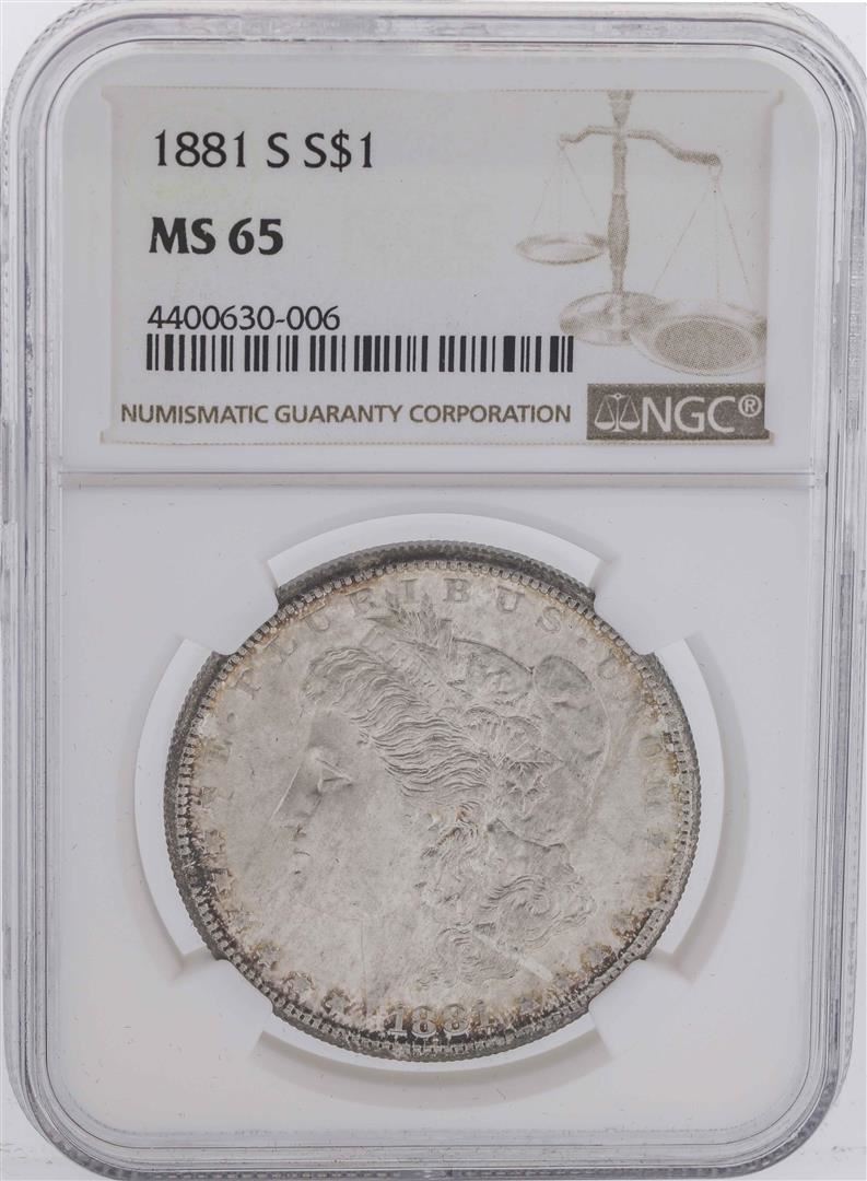 One 1881-S $1 Morgan Silver Dollar Coin NGC MS65. NGC Certified.