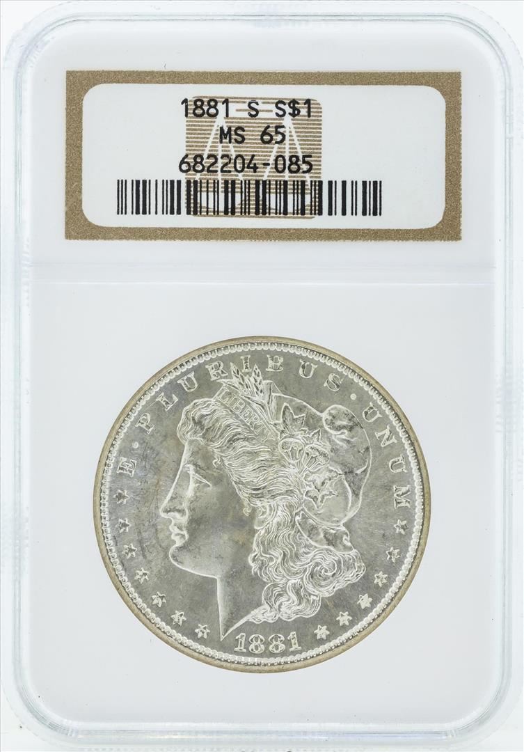 One 1881-S $1 Morgan Silver Dollar Coin NGC MS65. NGC Certified.