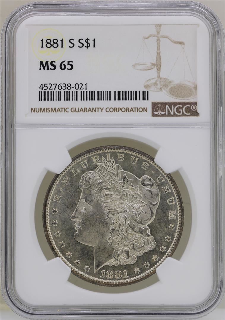 One 1881-S $1 Morgan Silver Dollar Coin NGC MS65. NGC Certified.