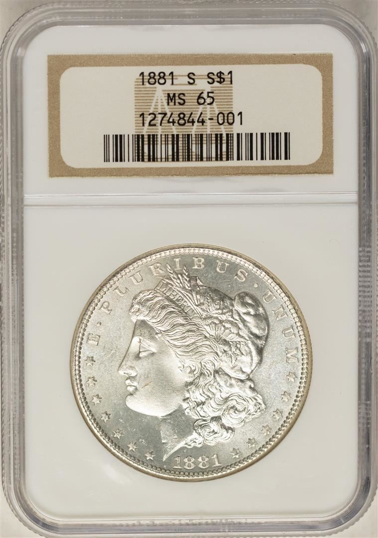 One 1881-S $1 Morgan Silver Dollar Coin NGC MS65. NGC Certified.