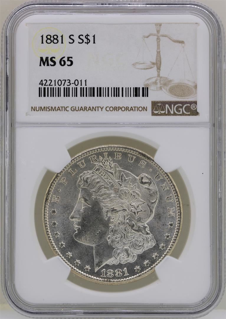 One 1881-S $1 Morgan Silver Dollar Coin NGC MS65. NGC Certified.