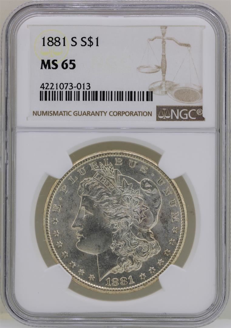 One 1881-S $1 Morgan Silver Dollar Coin NGC MS65. NGC Certified.